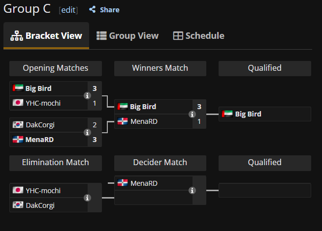 MenaRD inició su recorrido en el Grupo C enfrentándose al surcoreano DakCorgi, en un match muy reñido que terminó con victoria para el dominicano 3 a 2, sumando así su primer triunfo en la fase de grupos.
