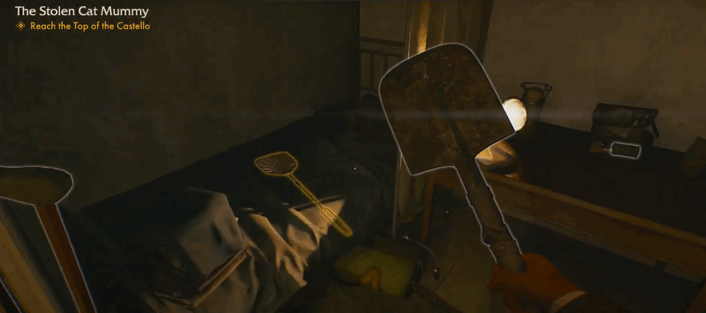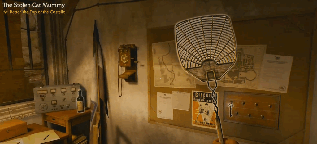 Explora zonas con presencia enemiga: el primero suele encontrarse en una habitación del Vaticano, junto a otros objetos cotidianos. En Gizeh, lo verás apoyado cerca de un campamento enemigo, rodeado de cajas y provisiones.