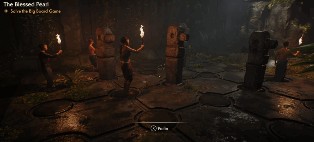 En el Game Room final debes “ganar la partida” moviendo piezas líticas en un tablero.